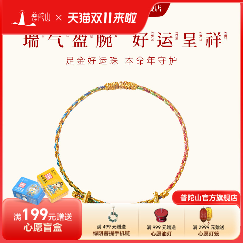 普陀山本命年足金转运珠手绳手工编织红绳手链女送朋友生日礼物