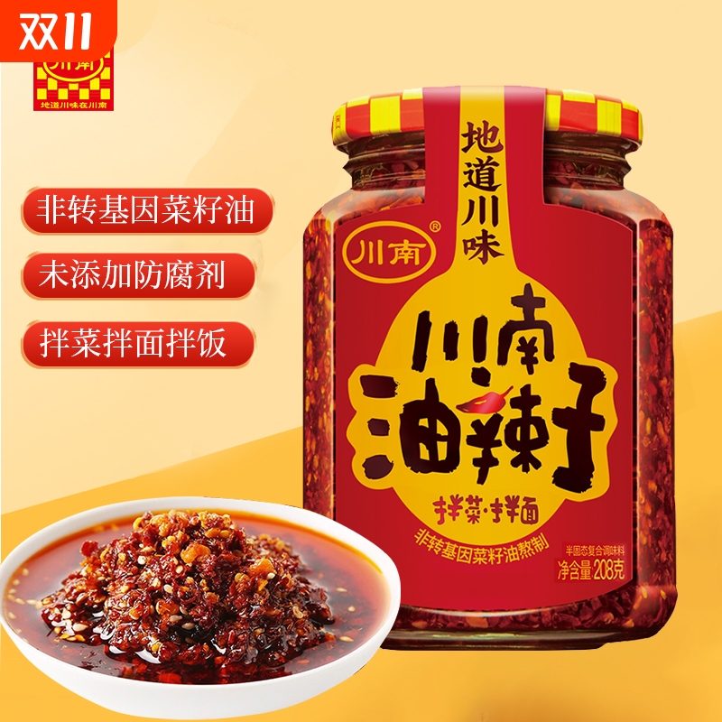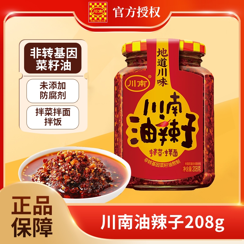 川南油泼辣子油辣子208g蘸料红油辣椒酱四川香辣酱辣椒油饺子拌饭