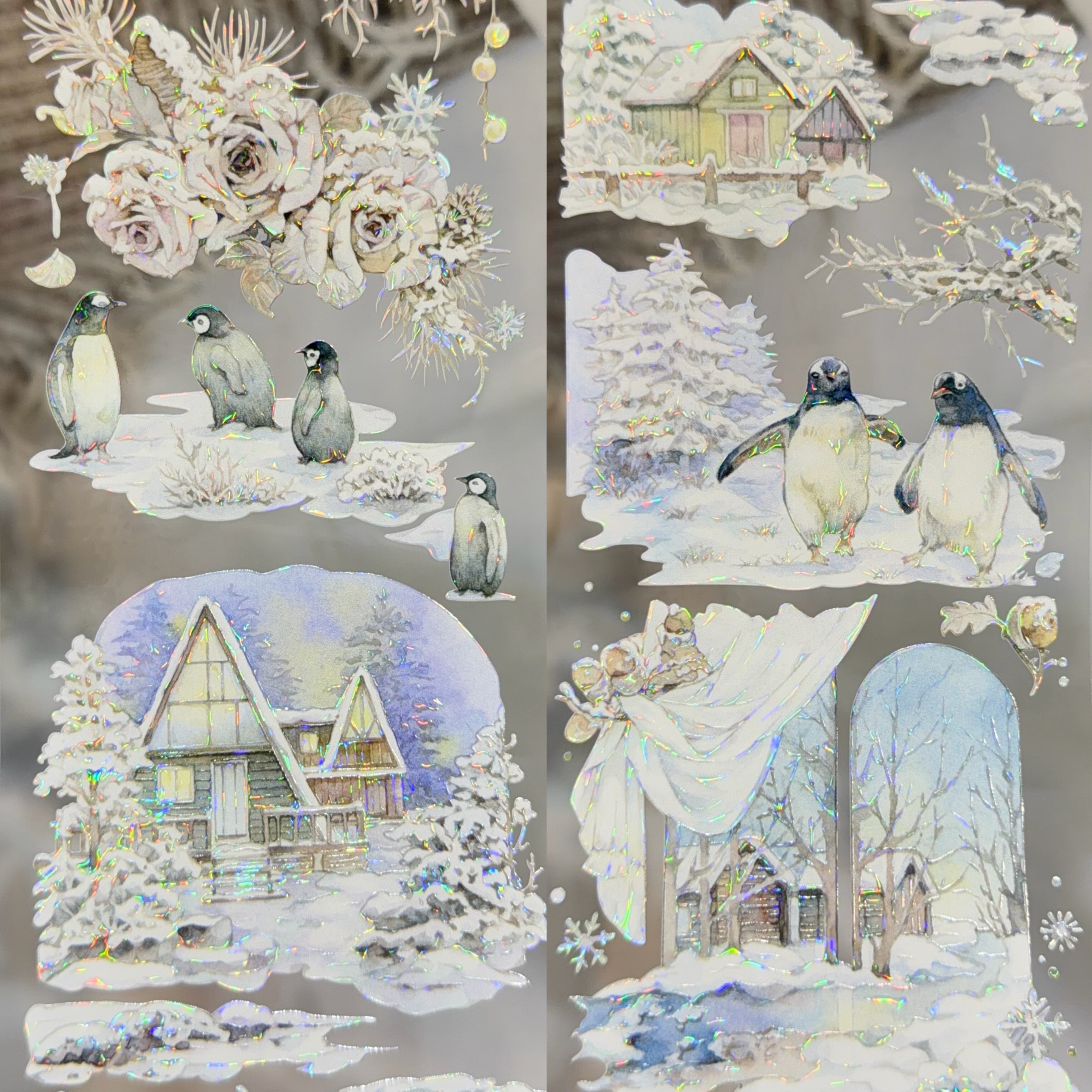 迷雾森林分装手账胶带森知树屋雪花红梅静谧花窗流麻咕卡拼贴