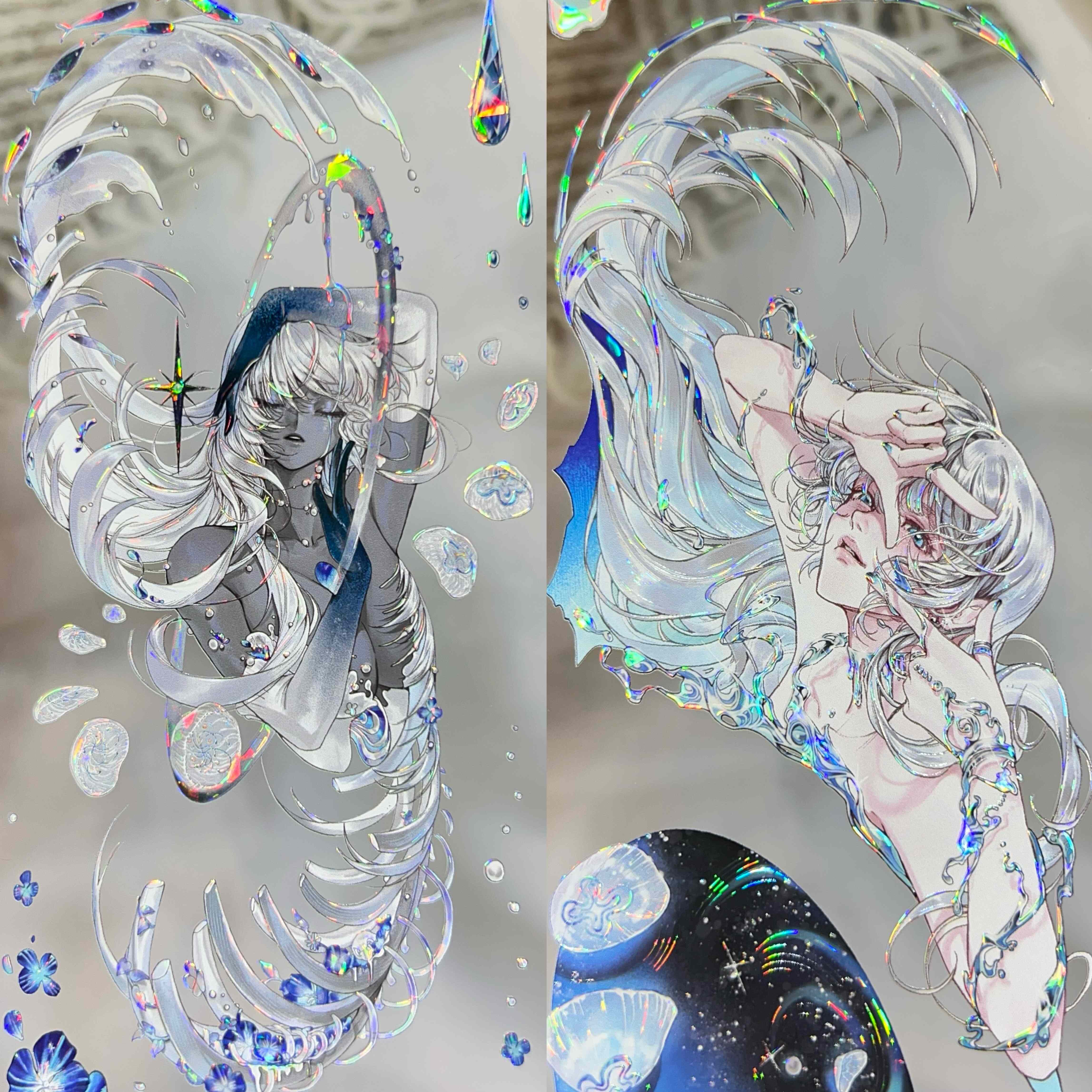 雾中星分装手账胶带蓝眼泪秋日荫大背景贝壳光流麻咕卡