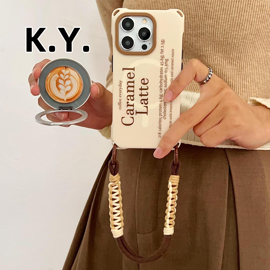 创意咖啡磁吸旋转支架手机壳带挂绳适用苹果16PROMAXVIVO