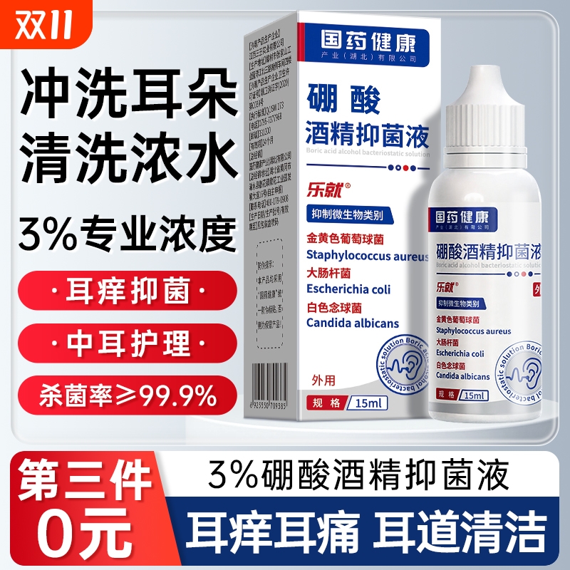 硼酸酒精滴耳液百分之三人用耳道清洁止痒止痛抑菌硼酸酒精抑菌液