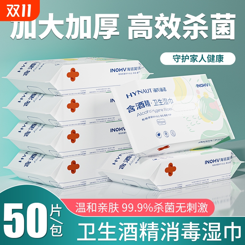 海氏海诺含酒精湿巾医用家用皮肤清洁杀菌消毒大号便携50抽卫生