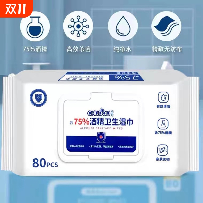 含75度酒精消毒湿巾办公家用卫生杀菌专用湿纸巾大包婴儿手口湿巾