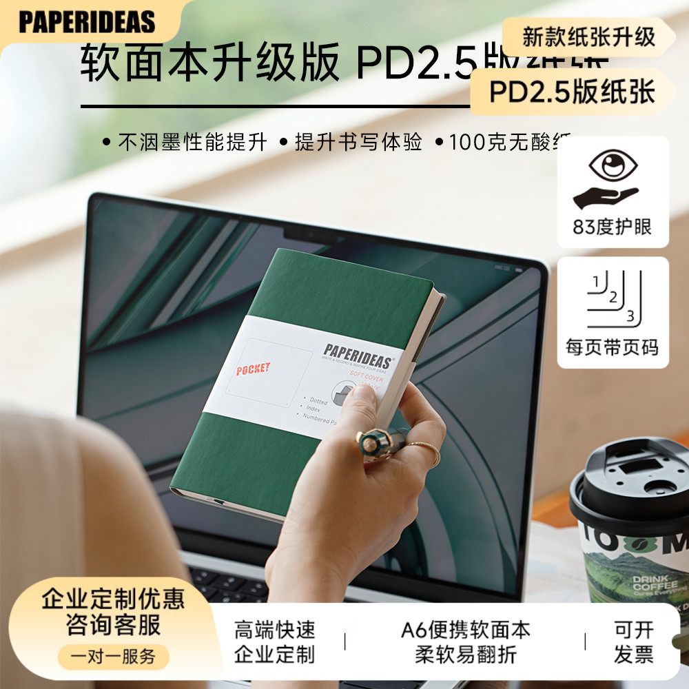 A5页码裸背本简约商务记事本点阵横线空白方格无酸纸内芯手账本学