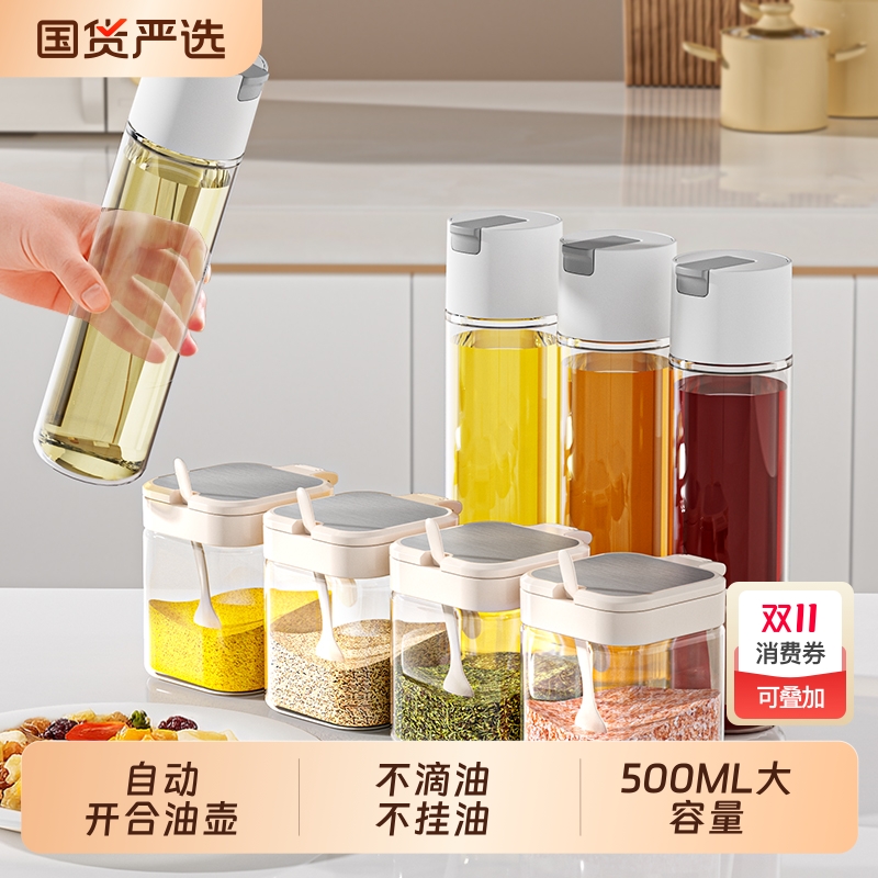 油壶油瓶酱油醋调料瓶厨房家用自动开合不挂油玻璃套装食品级新款
