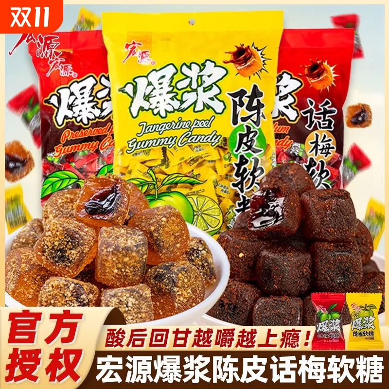 宏源爆浆陈皮话梅糖水果酱流夹心软糖招待糖酸甜休闲零食袋装喜糖