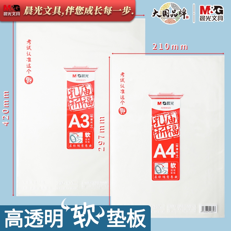 晨光孔庙高透明软垫板垫板学生美术垫板防污垫防水超大a3随意弯折