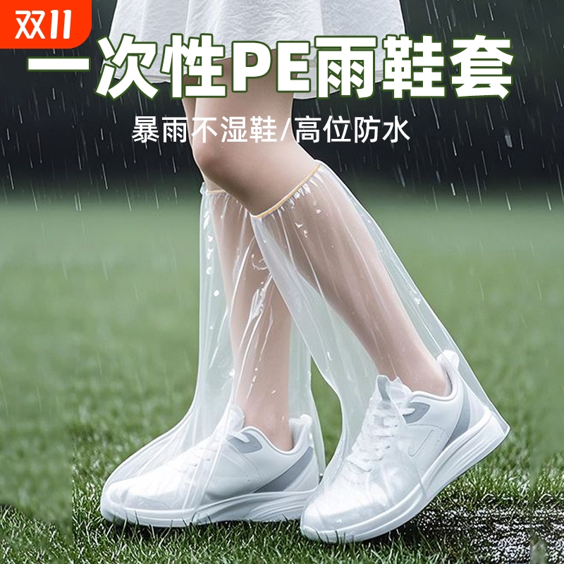 一次性雨鞋鞋套下雨天防水防滑透明塑料加厚耐磨脚套防雨高筒长筒
