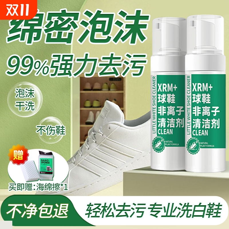 【黑科技】非离子污渍干洗剂/泡泡慕斯刷洗/去黄变白不伤鞋面