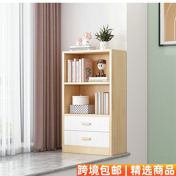 实木书架落地置物架儿童家用书柜阳台飘窗柜子带抽靠墙收纳储物柜