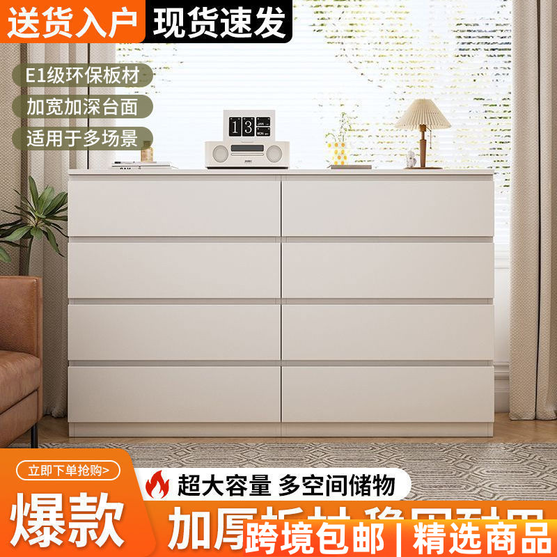 五斗柜客厅靠墙储物柜家用简约现代电视柜卧室奶油风抽屉式收纳柜
