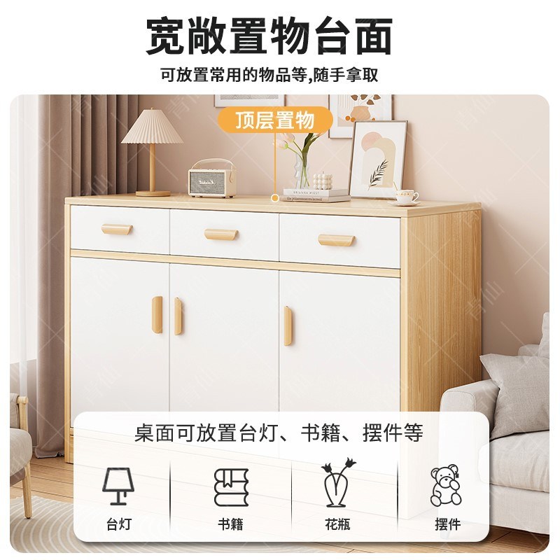 餐边柜纯实木靠墙储物柜客厅柜加厚柜奶油风橱柜餐边柜靠墙带抽屉