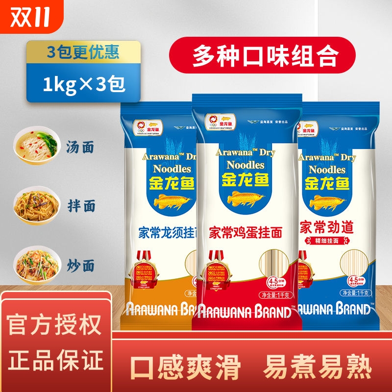 金龙鱼挂面家常系列劲道/龙须/鸡蛋挂面1kg*1/3包速食面条宿