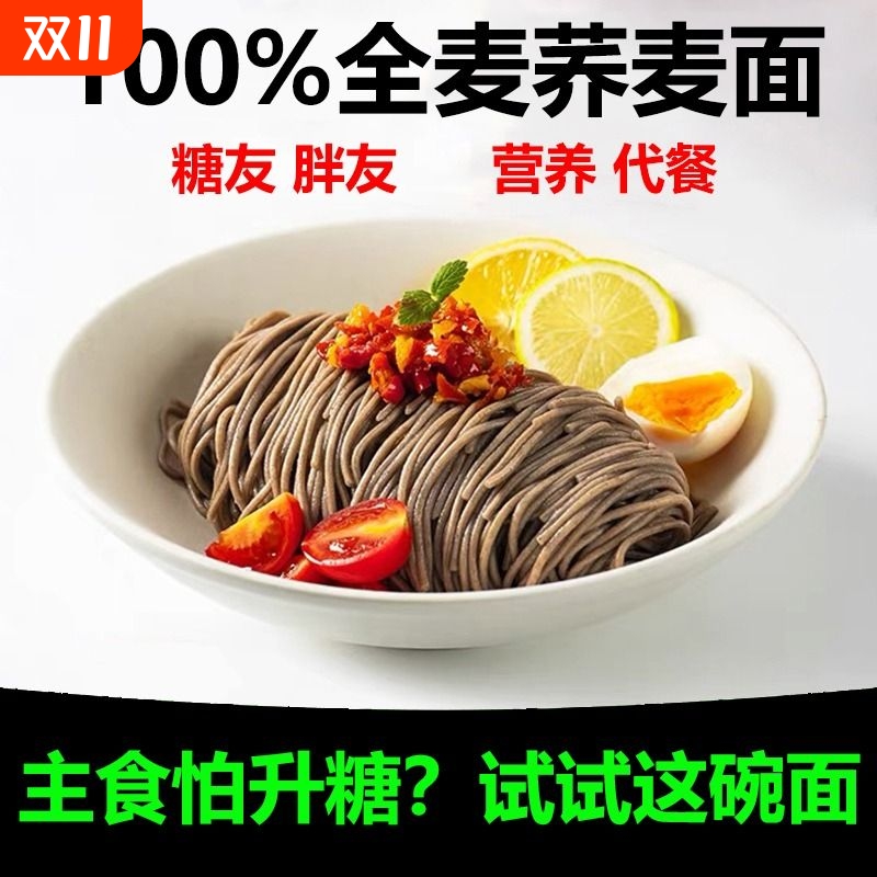 黑纯荞麦面条无糖精全麦粗粮杂粮乔面龙须面代餐主食速食挂面糖友