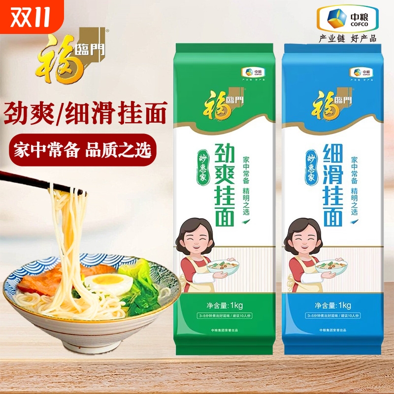 福临门中粮妙惠家1000g劲爽细滑挂面汤面拌面早餐营养待煮面条