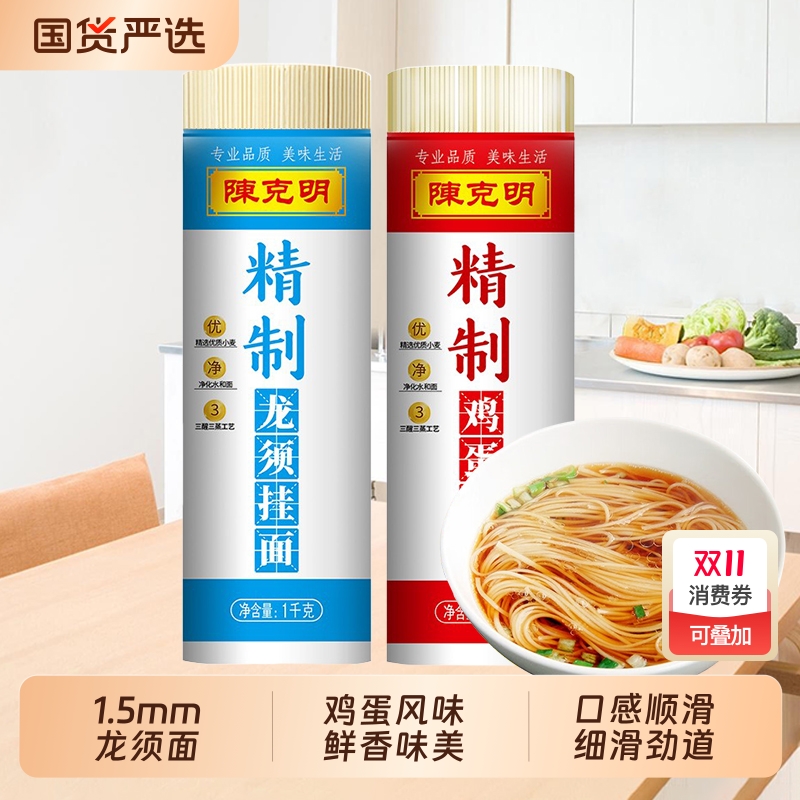 陈克明750g精制鸡蛋挂面面条阳春劲道龙须家用煮食鲜香速食整箱