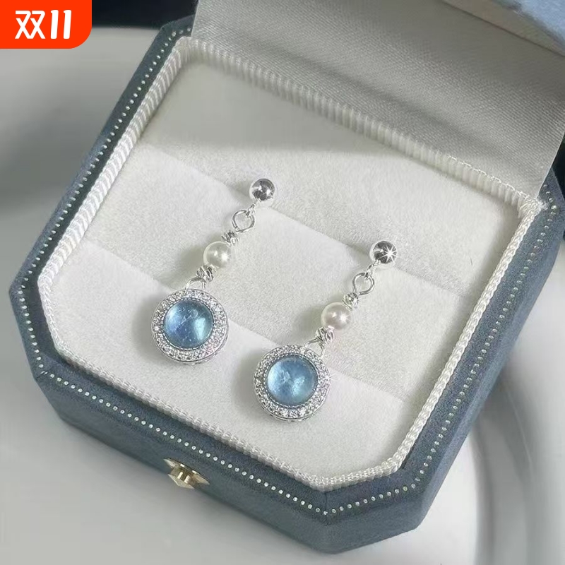 「岚山之风」蓝色海蓝宝耳夹女无耳洞耳环轻奢简约法式高级感耳饰