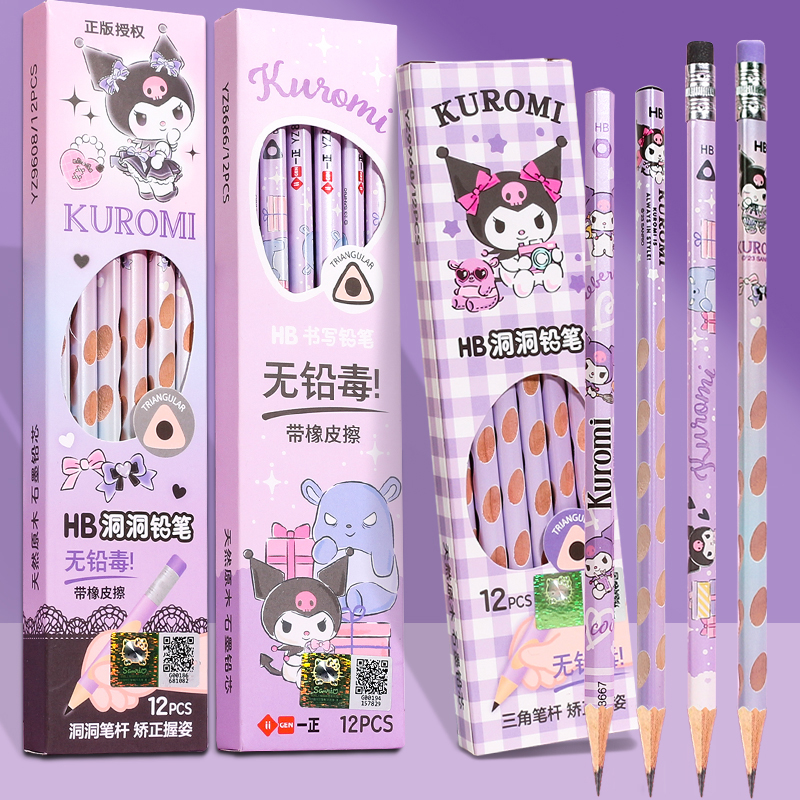 正版库洛米洞洞三角铅笔小学生六角杆儿童铅笔卡通hb正姿幼儿园
