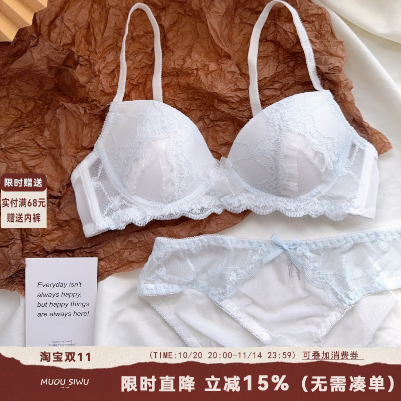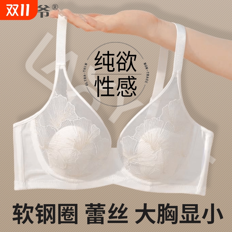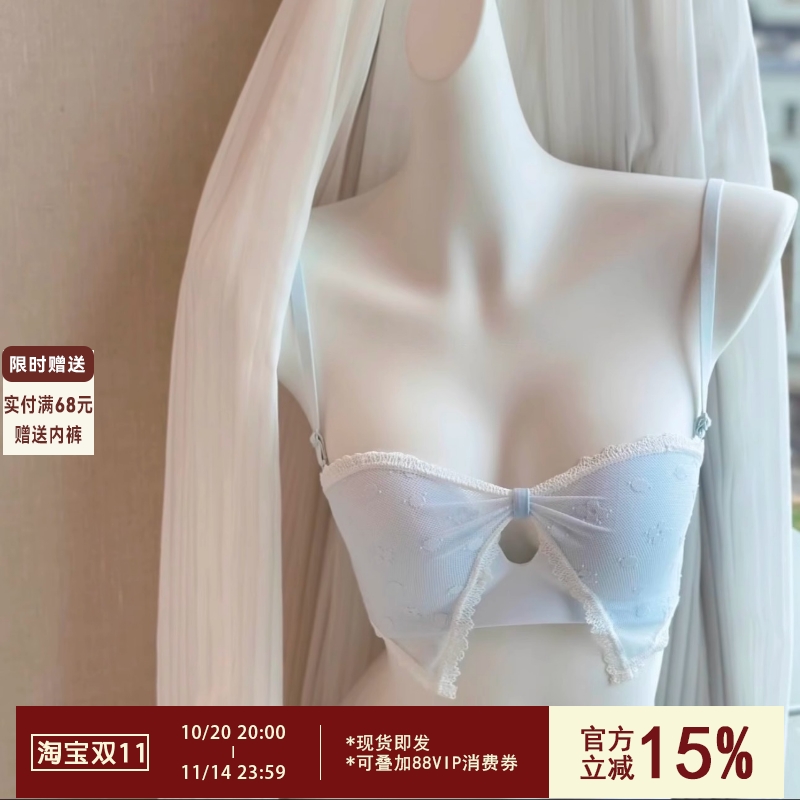 性感蕾丝蝴蝶结内衣女士大胸显小胸聚拢薄款纯欲风细肩带文胸套装