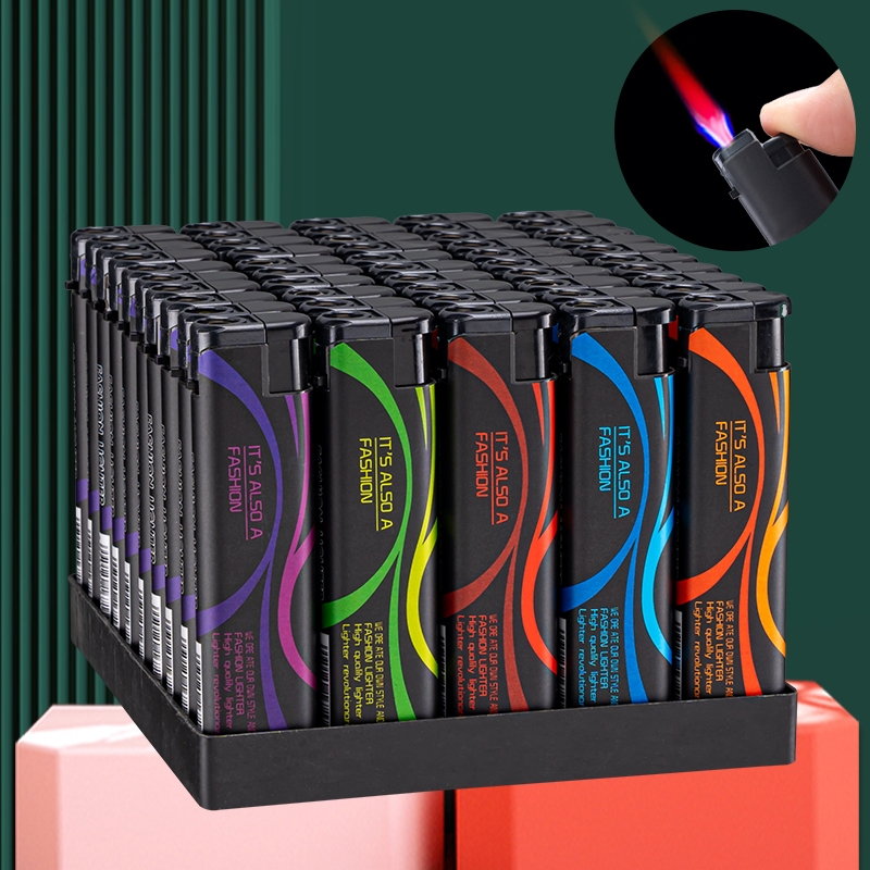 新款防风打火机金属耐用高端正品充气一次性火机批发50支印字蓝焰