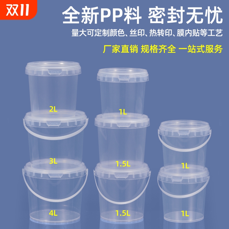 加厚食品级透明塑料桶零食泡面酱料包装桶带盖手提密封圆桶5升1L