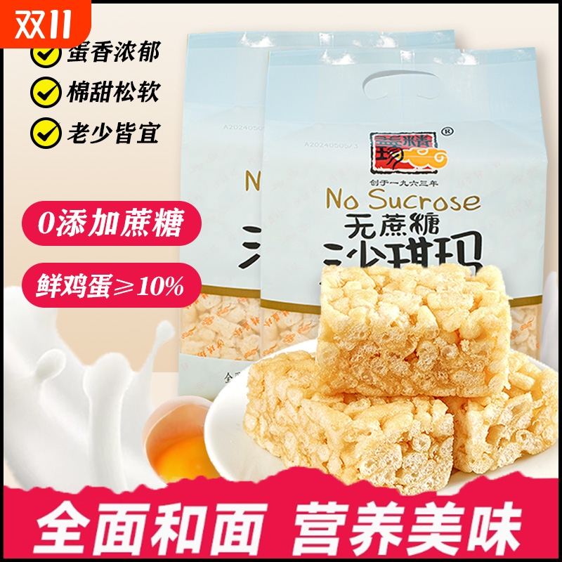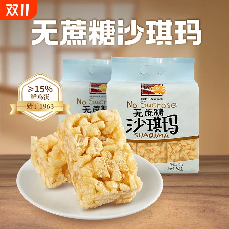 精益珍无蔗糖沙琪玛零食控甜早餐糕点心休闲小吃368g健康糖友传统