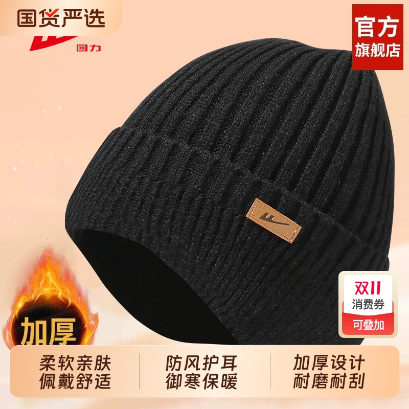回力冬季毛线帽户外防寒保暖防风护耳男女骑车加绒加厚耐刮针织帽