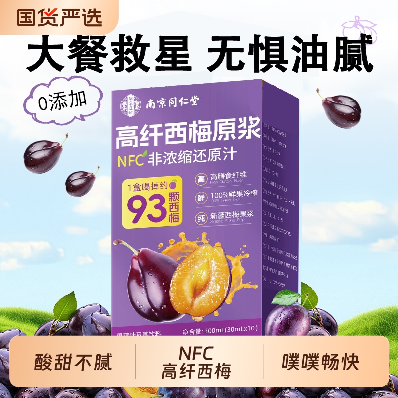 同仁堂西梅汁大餐救星益西梅原浆菌高膳食纤维果饮脂排宿果汁饮料