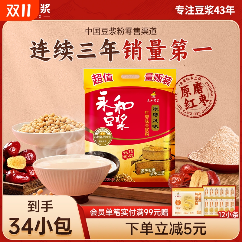 永和豆浆1020g原磨红枣豆浆粉高蛋白膳食纤维早餐冲饮34小小包