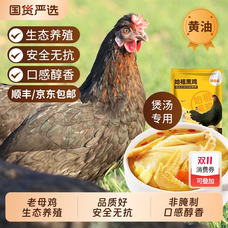 好念头整只装黄油老母鸡营养滋补香炖鸡汤始祖黑鸡鲜地鸡现杀鸡肉