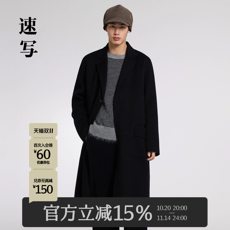 速写男装中长款毛呢外套
