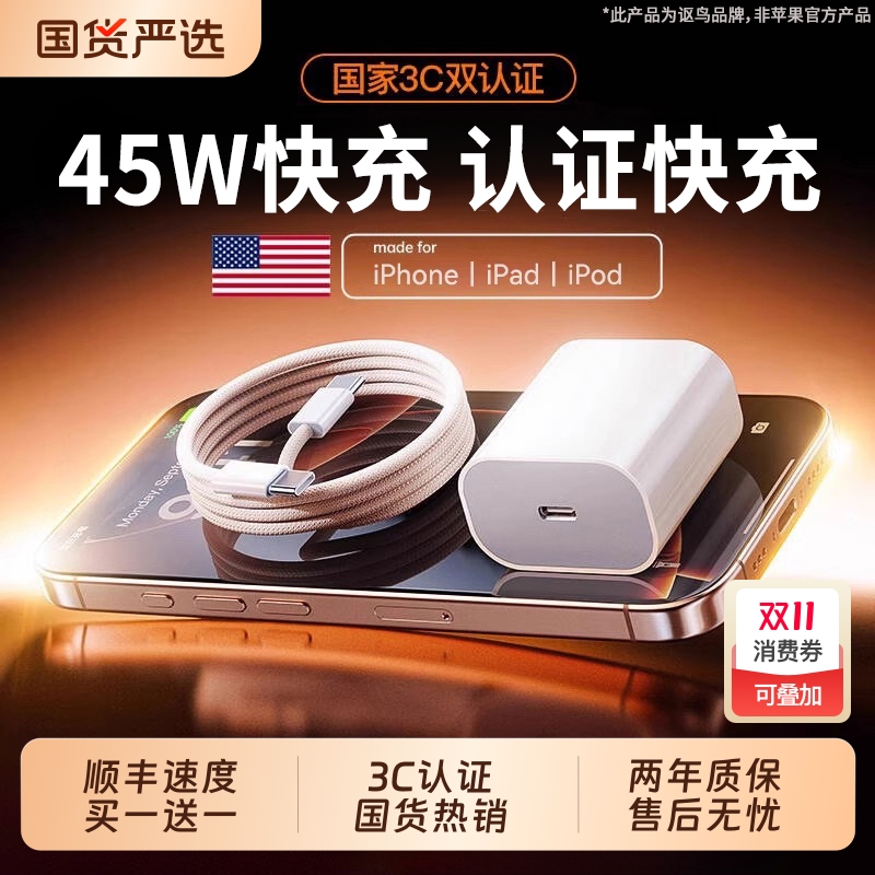 【45W认证快充】适用苹果15/16pro充电器头iphone1