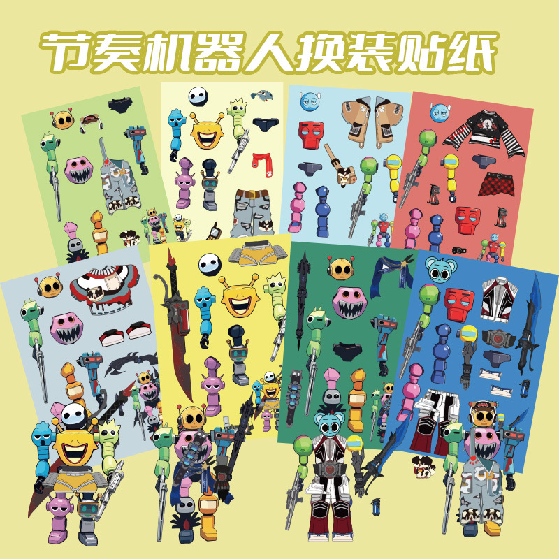 汽车机器人节奏盒子贴纸人物换装免裁剪diy创意手工益智儿童玩具