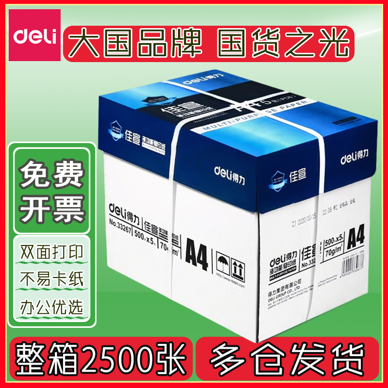 得力A4纸打印复印纸70g单包办公用品a4打印草稿纸学生办公打印