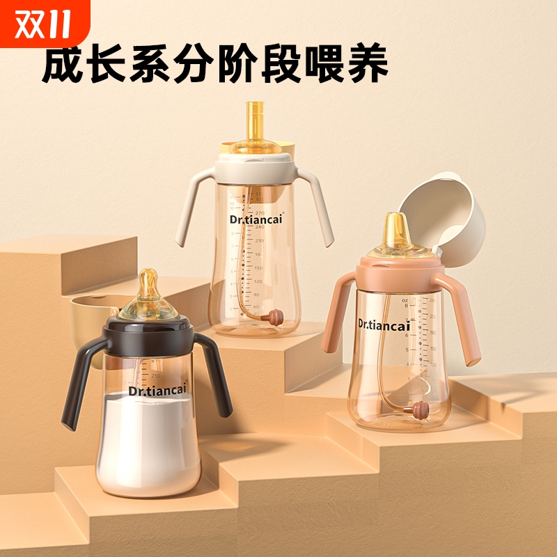 星球婴儿保温杯外出小月龄宝宝学饮杯吸管杯儿童一岁保温奶瓶手柄