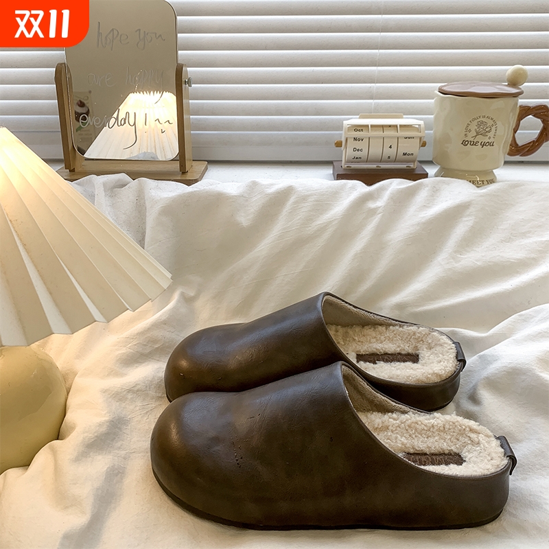 防水包头半拖鞋女秋冬外穿2025新款加绒百搭一脚蹬厚底勃肯棉拖鞋