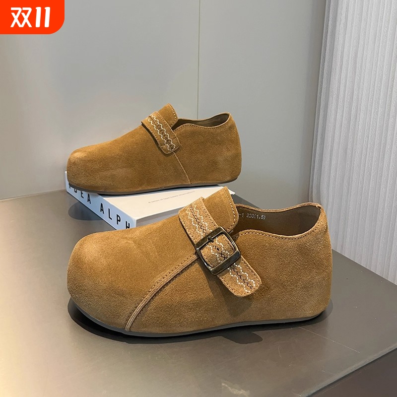 真皮版!厚底全包勃肯鞋女复古一脚蹬平底乐福鞋外穿百搭两穿单鞋