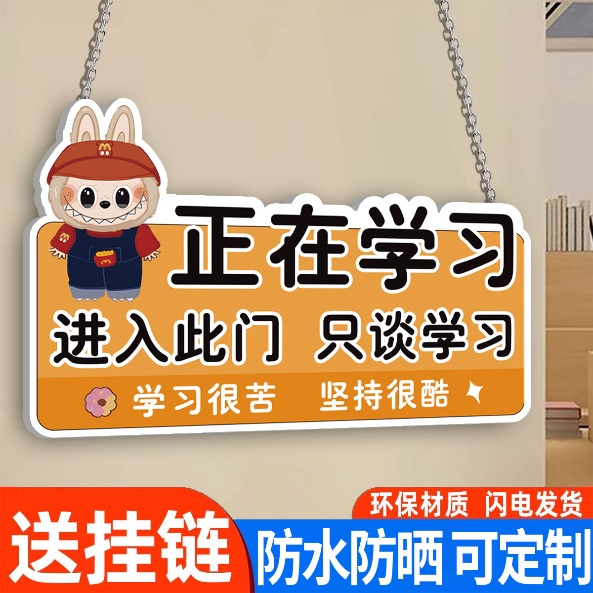进入此门只谈学习墙贴labubu班级牌教室门牌学习很苦坚持很酷墙
