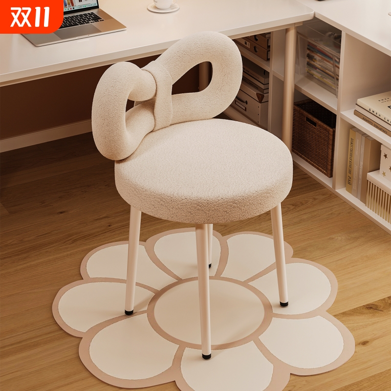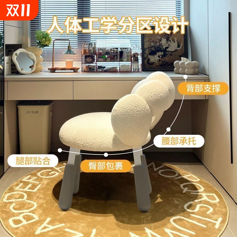 奶油风化妆凳女生卧室梳妆台椅子轻奢高级感化妆美甲椅靠背久坐
