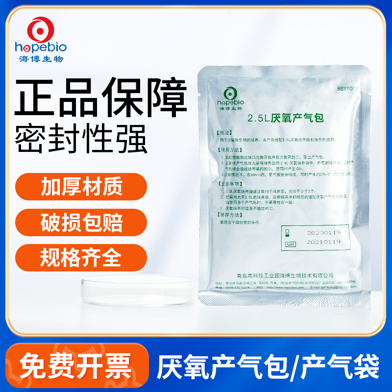 青岛海博厌氧产气袋培养袋2.5L微需氧产气包氧气指示剂瓷珠保存管