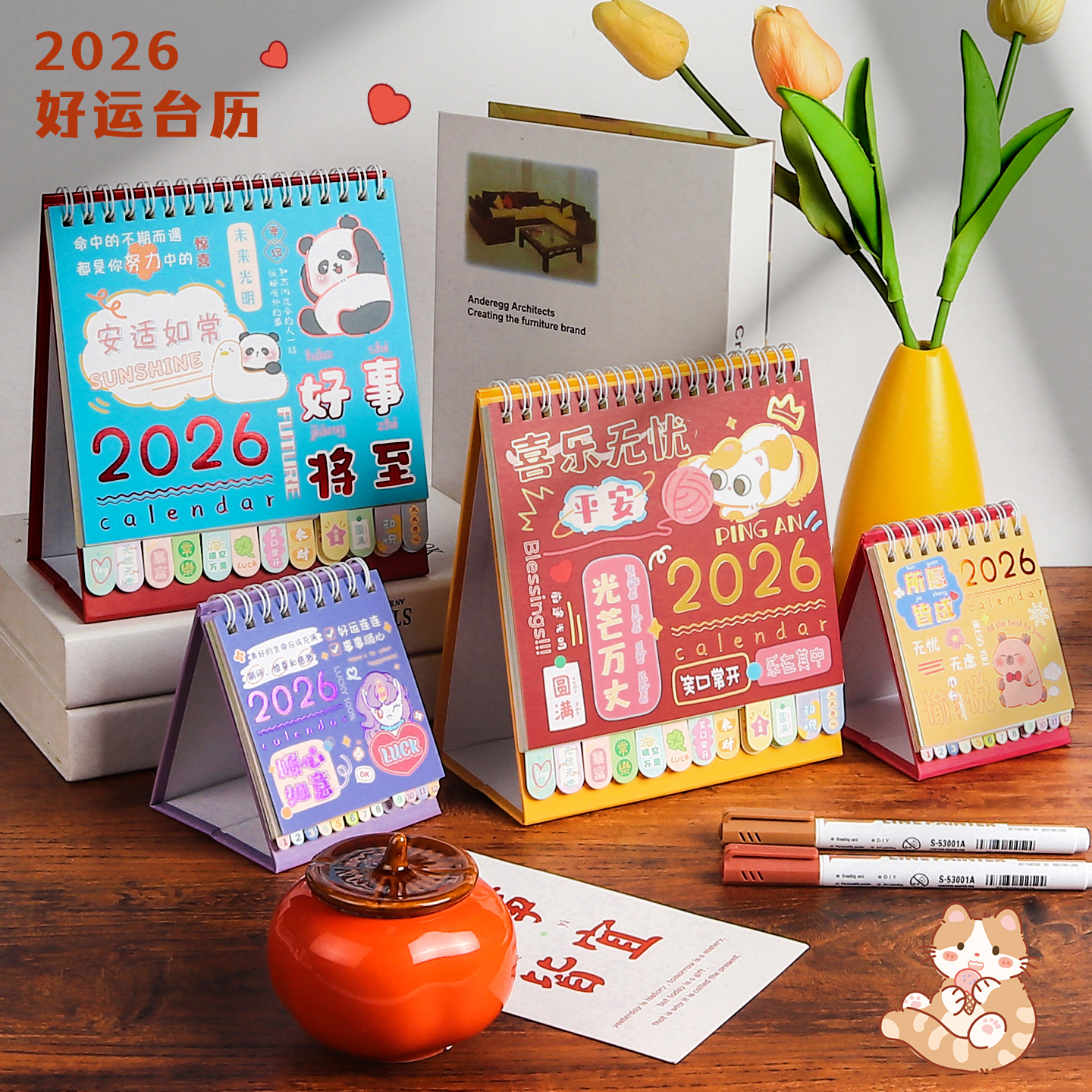 2026年台历学生专用记事本创意桌面摆件学习打卡计划本上午办公备