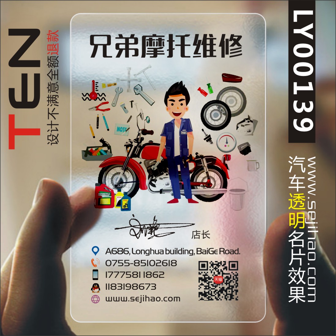 摩托车维修美容修理厂名片制作