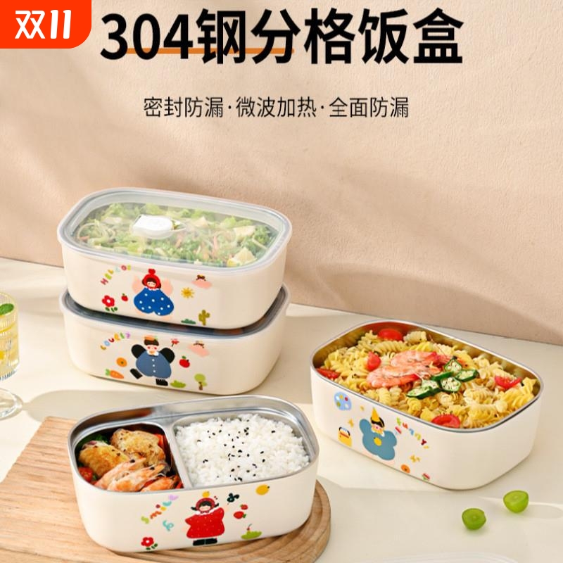 304不锈钢保温饭盒高颜值分格餐盒上班族便当盒密封饭盒可微波炉