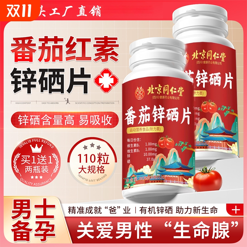 北京同仁堂番茄红素锌硒片男性锌硒宝片补锌男士备孕免疫力活力