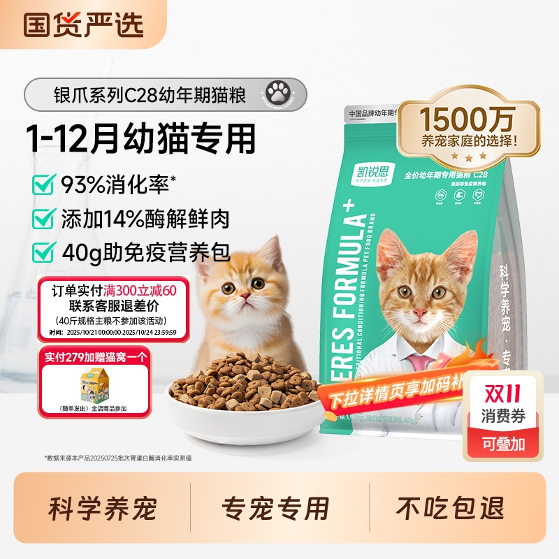 凯锐思银爪C28猫粮幼猫专用1到12月奶糕鱼肉营养免疫高蛋白无谷