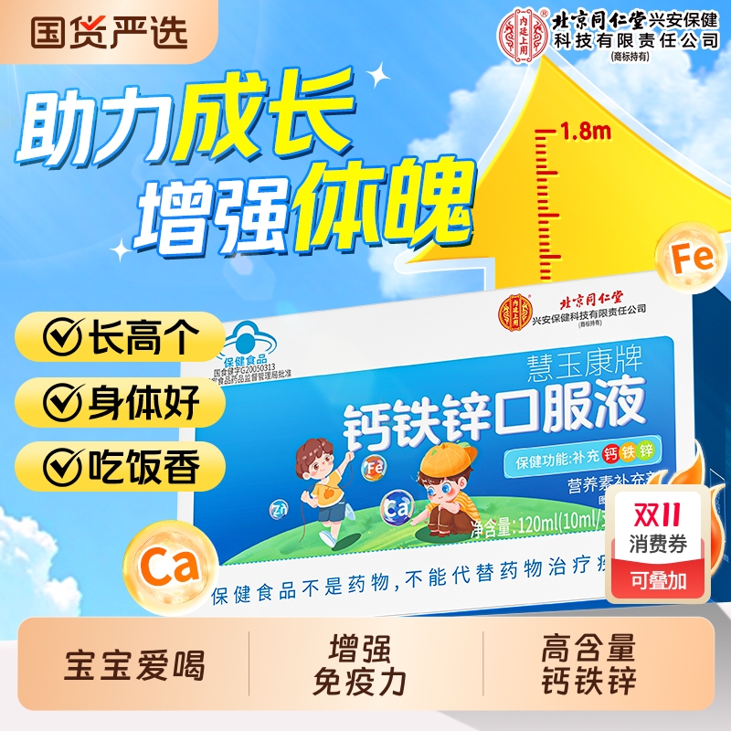 北京同仁堂钙铁锌口服液儿童成长葡萄糖酸钙官方旗舰店增强免疫力