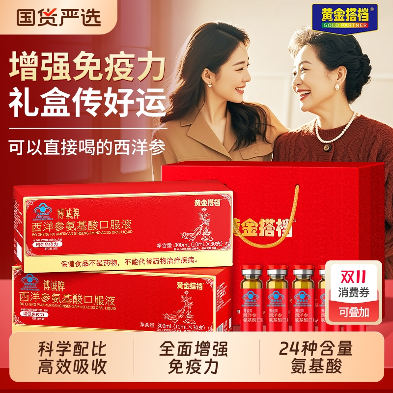 黄金搭档氨基酸口服液增强免疫力中老年营养品过节年送长辈礼盒装