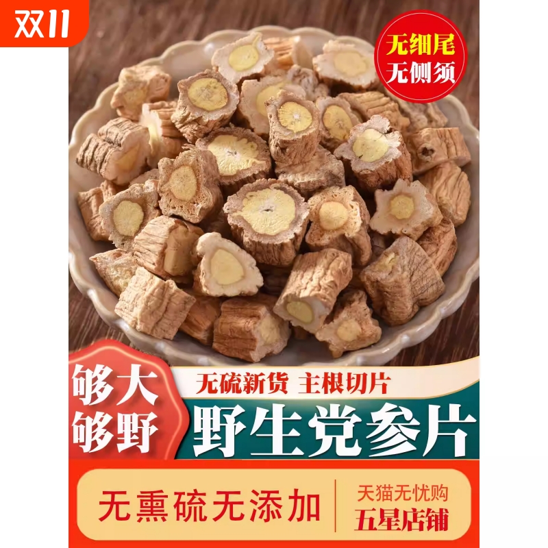 野生党参500g克干货甘肃纹党叁片特级当参段配当归黄芪泡水