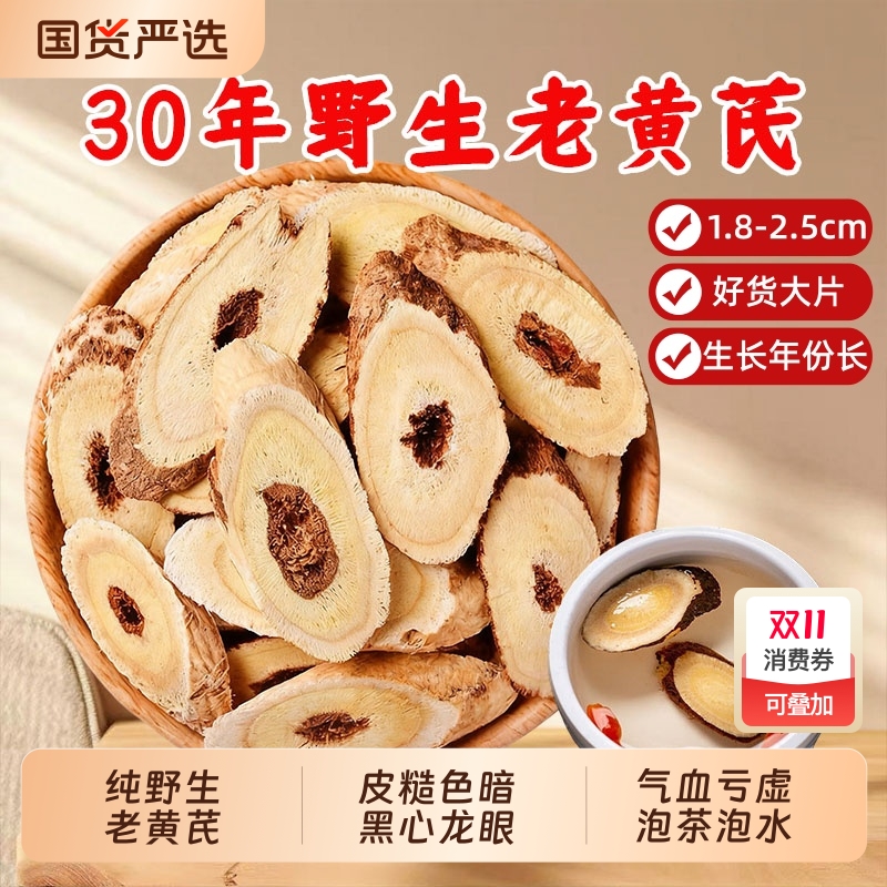 甘肃野生黄芪中药材正宗25年老黄芪北芪片泡水喝当归党参组合煲汤